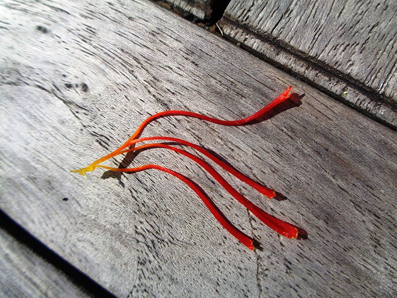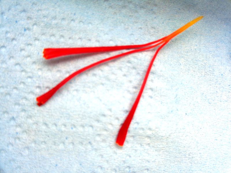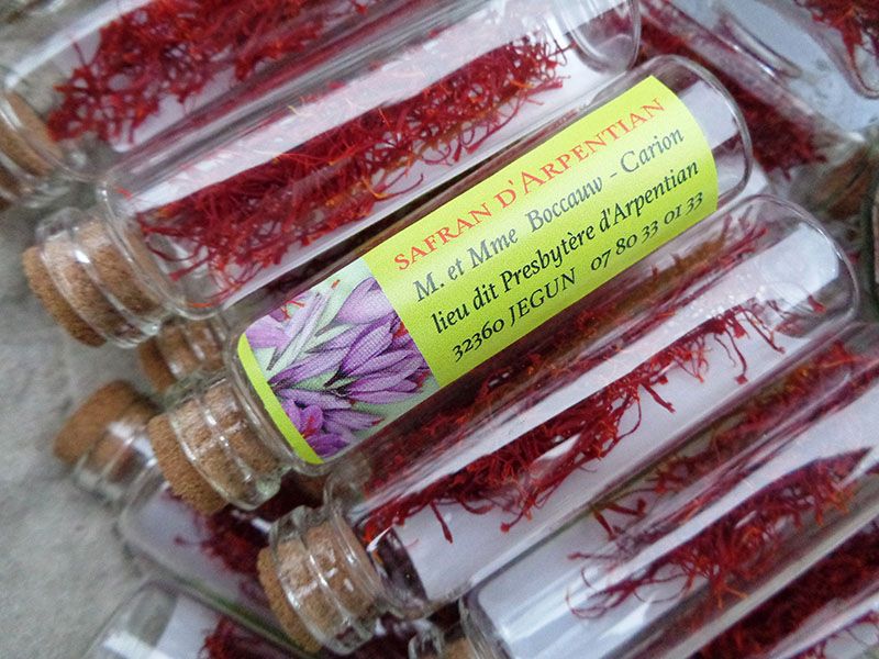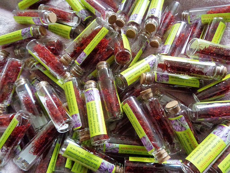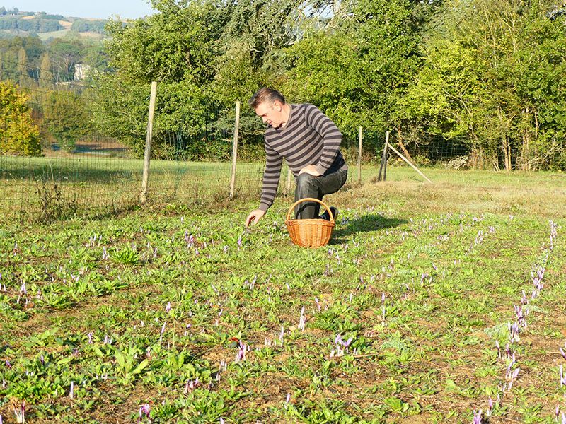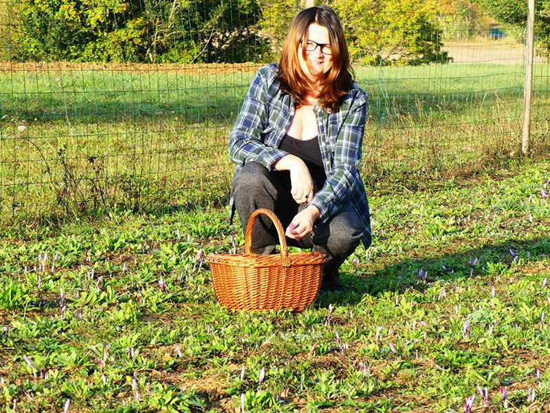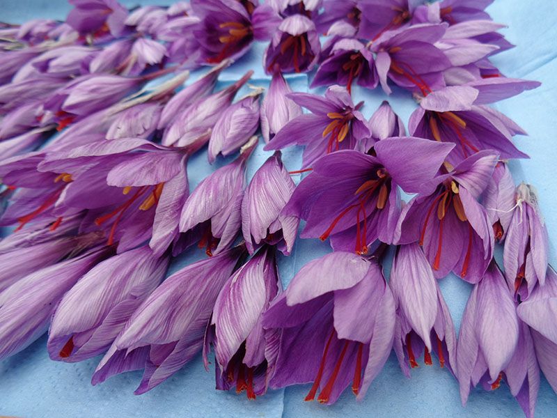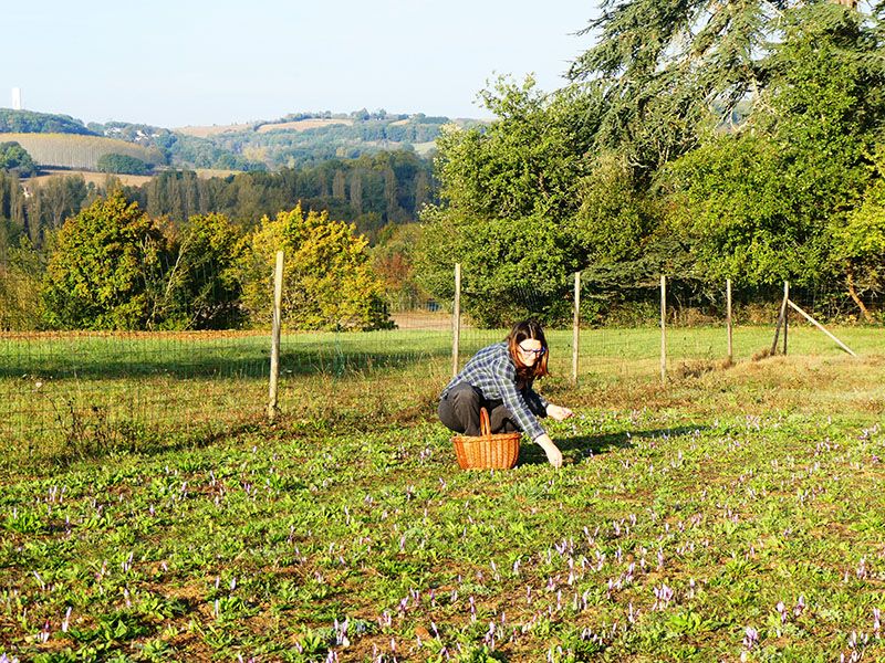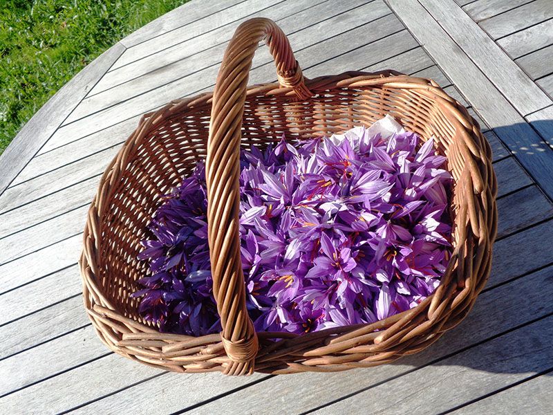 - Les fleurs sont ramassées une à une à la main, le matin, avec une grande délicatesse afin de ne pas abîmer les stigmates qui seront prélevés fleur par fleur, puis mis à sécher.