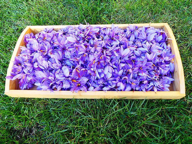 Le safran est une épice rare et chère dont le rendement à l'hectare n'est que de 2 kilos. Il faut en effet entre 150 000 et 200 000 fleurs pour obtenir 1 kilo de safran.
